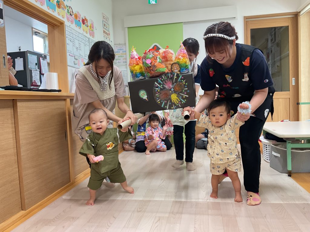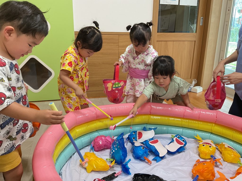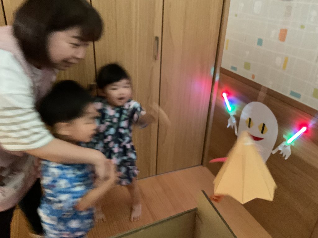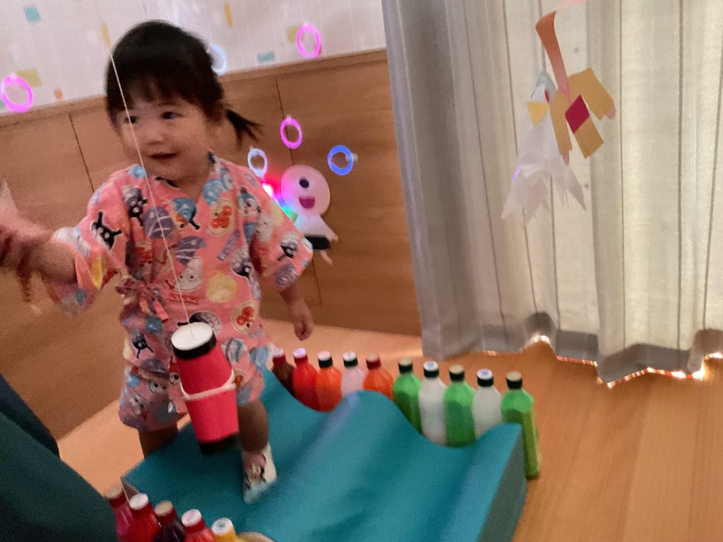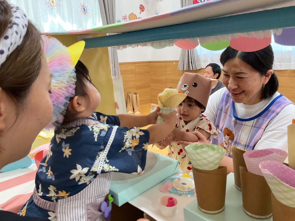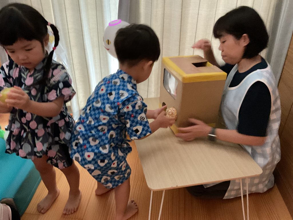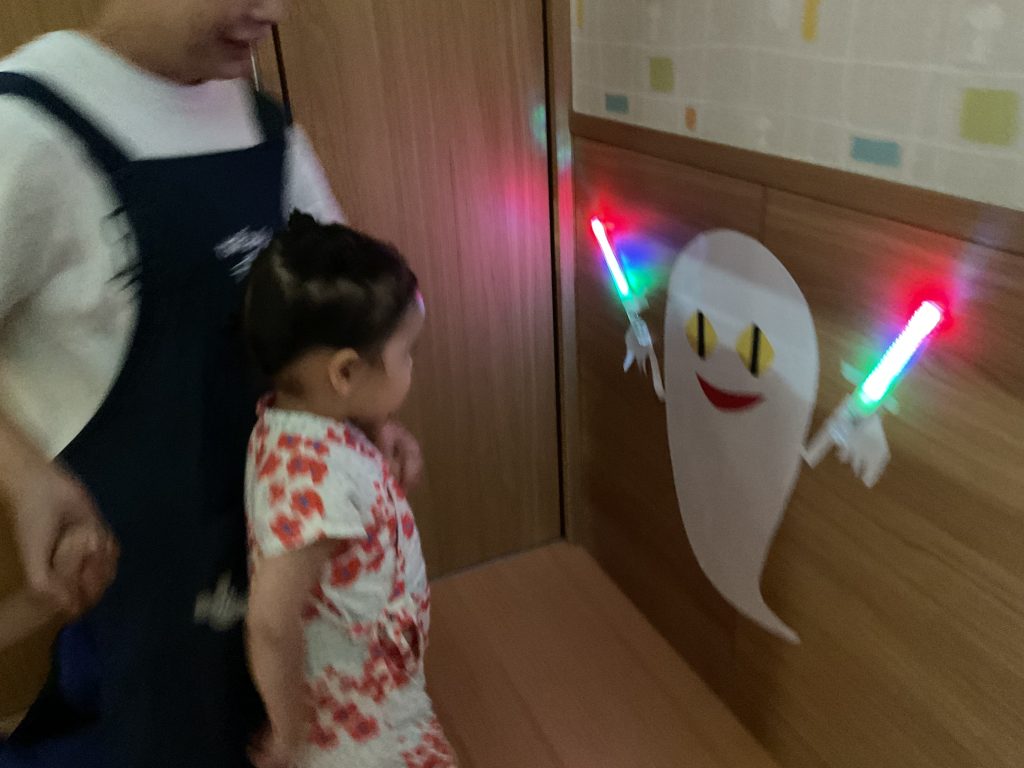 おみこしを担ぎました💛おひさま組も担ぎました🥰🥰にじ組さんのお兄さんお姉さんが屋台の店主です!! クレープ上手にできたねぼうしやさん。いろんな動物の帽子があるね!! 最後はお化け屋敷👻 いろんな仕掛けが👻👻👻 子どもたちも先生も大盛り上がりでした🌟